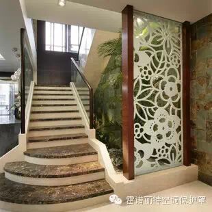 鏤空雕花的古典美與現(xiàn)代氣息充分結(jié)合,形成了現(xiàn)在頗具個性的雕花板。在裝修行業(yè)的不斷演變中,它的材質(zhì)從實木延伸到仿實木、奧松板、密度板等等,充分考慮了現(xiàn)代家居裝修的需求,給出更多的選擇空間。雕花板作為隔斷,不僅有分隔空間的作用,也有很高的裝飾性和藝術(shù)價值。多扇的雕刻板還可以組成屏風,用在客廳等空間比較大的地方。棕色或是紅色的雕花板有一種現(xiàn)代的古典美,而白色的雕花板卻洋溢著一種個性的時尚氣息。
