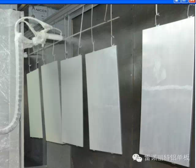 鋁單板表面進行多層氟碳噴涂前要先去油去污然后水洗然后堿洗再進行一次水洗,接下來鉻化,再一次水洗,然后用純水洗。做好這些準備工作以后接下來就是進行氟碳噴涂流程了。