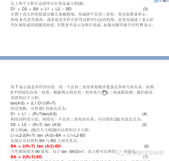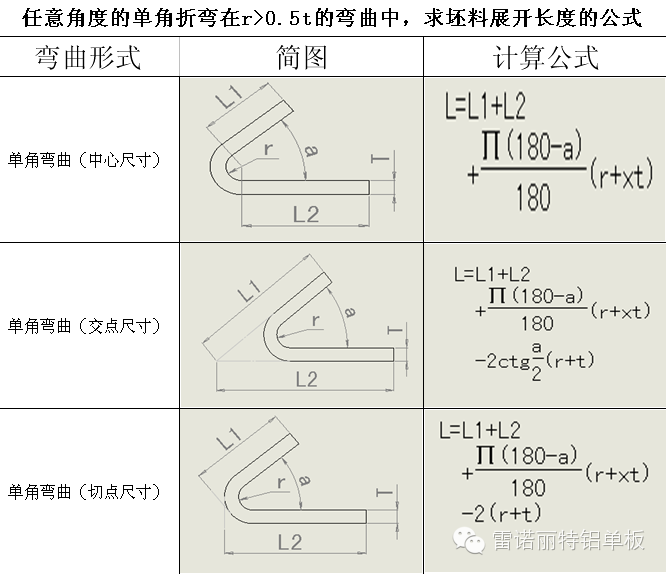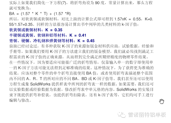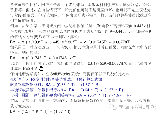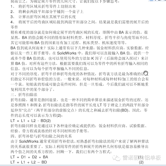 一公司他們的做法是查手冊查折彎扣除,然后把這些數(shù)填寫到SolidWorks折彎扣除表里。建模時用這張表,自動算展開量。SolidWorks的展開結(jié)果和他們之前用手算的結(jié)果是一樣的。(因為都是一個公式嘛)。