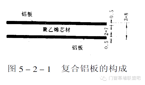 復(fù)合鋁板構(gòu)成如圖5-2-1所示,表層雙面為0.4mm-0.5mm 的鋁板,中間為聚乙烯芯材。