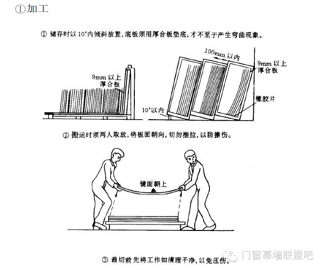 鋁合金板(單板、復(fù)合板和蜂窩板)應(yīng)傾斜立放,傾斜角不大于10度。地面上應(yīng)墊上厚三合板。