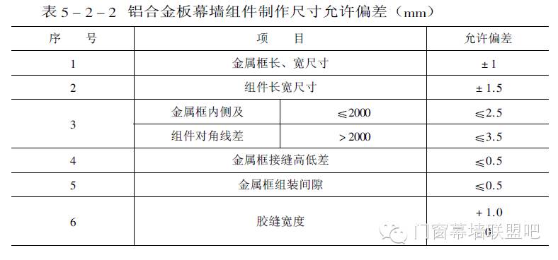 (三)鋁合金板幕墻組件制作尺寸偏差
