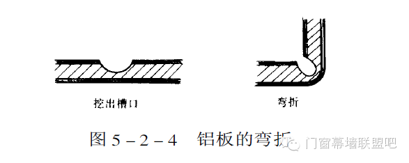 彎折:當(dāng)彎曲圓角為2-8mm時(shí),要先銑槽,留下0.5mm芯材后彎折(圖5-2-4)。
