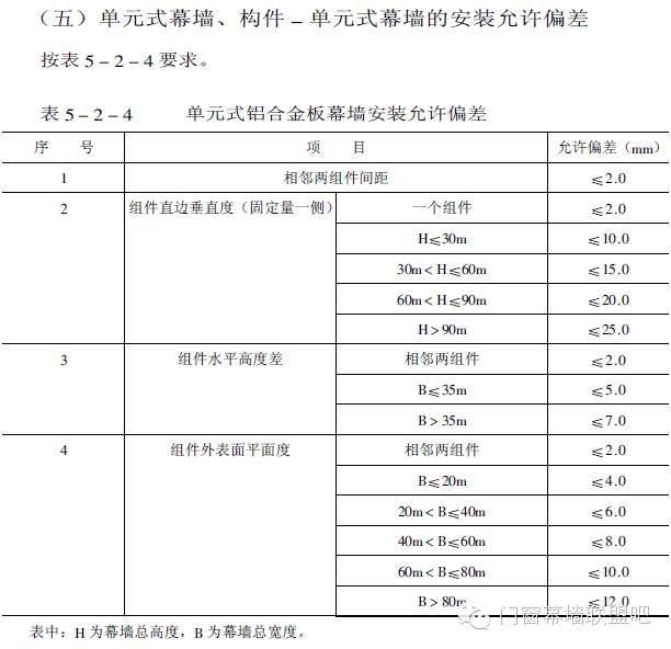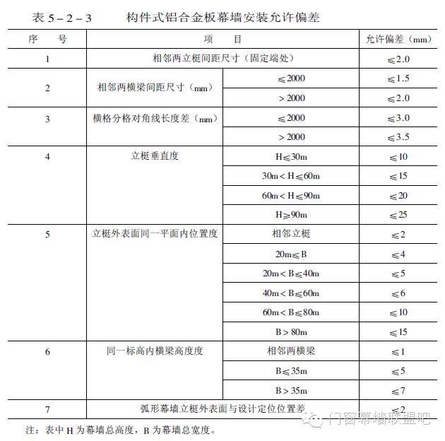 (四)構(gòu)件式鋁合金板幕墻橫梁、立柱安裝允許偏差